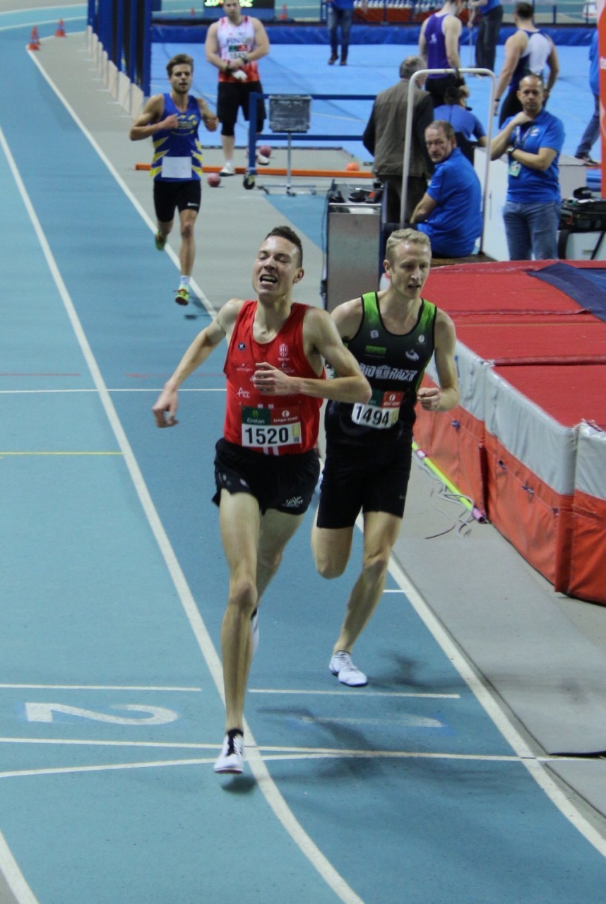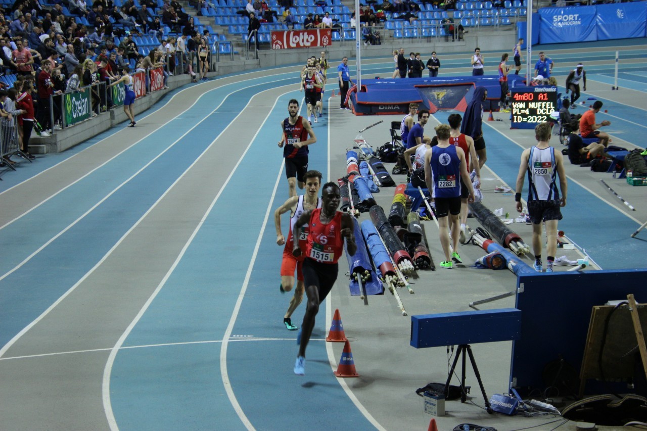 Hordeloper Michael Obasuyi had eerder op de dag al voor een even ‘straffe stoot’ gezorgd. Na een vlotte kwalificatie in de reeksen, knalde Michael in een machtige 7”69 naar de titel op de 60m horden. Ook al een nieuw PR en bovendien goed voor de 4e plaats op de Belgische ranking aller tijden. In het hoogspringen diende Bram Ghuys tevreden te zijn met 2m19 en de zilveren medaille. Hij moest het afleggen tegen eeuwige rivaal Thomas Carmoy (CRAC), die over 2m23 wipte. Onze meerkamper Jaan Bal ging over 5m00 in het polsstokspringen en mocht zo met brons naar huis. Ruben Pint geraakte met 7”20 niet door de reeksen van de 60m en op de 400m kon ook Bjirsen Deherder (52”06) geen aanspraak maken op een podiumplaats. Daan Van Diest (4’08”05) werd 9e op de 1.500m, een race waarin Isaac Kimeli puik tempowerk verrichtte voor trainingsmakker en de nieuwe nationale kampioen Stijn Baeten (DCLA).